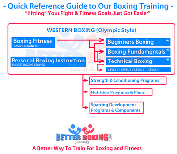 Take a look at our quick reference guide below to help you understand our traininig structure and help you decide what “route to take" with our complete boxing training system....OR better still,call Our Private Gold Coast Boxing Gym for a Private One on One Consultation and "Boxing Try- Out Session"